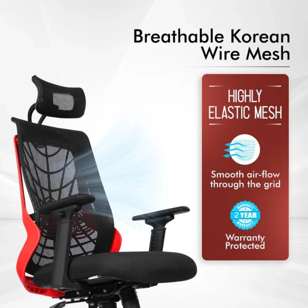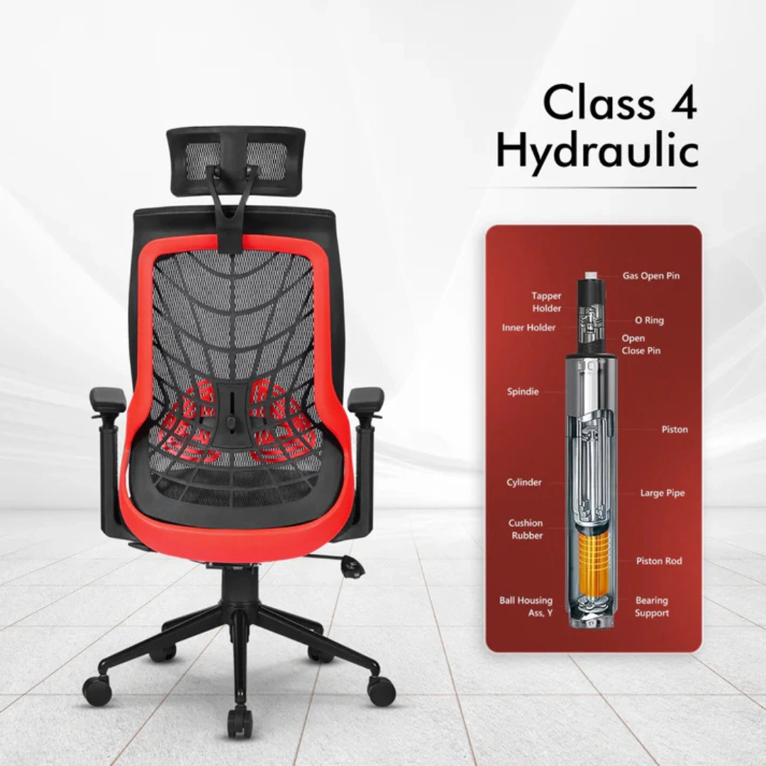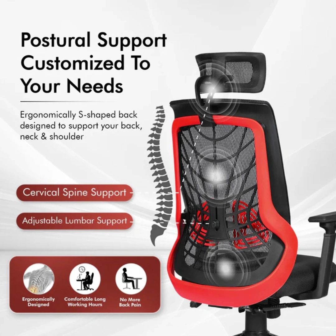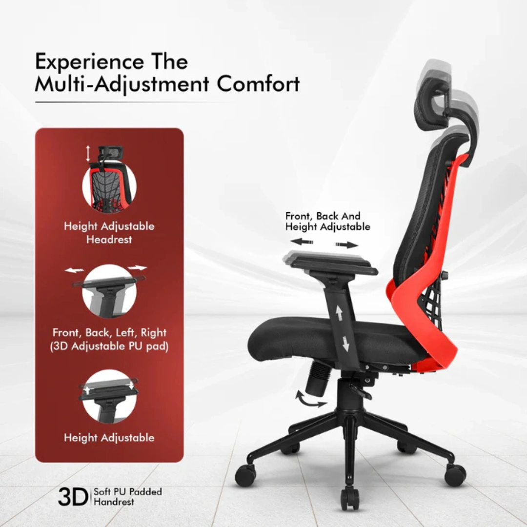 Seat frame material - Nylon | Internal Seat Material: Wood | Filled with - 3D Adjustable PU Pads| Swivel: 360º swivel | Seat Cover: Mesh | Size: High Back | Smart Any-Angle| Gas-lift: Class 4 | Base: Heavy Duty Chrome Base | Castors: Nylon Dual Wheels | Maximum Weight Capacity: Up to 140 Kgs | Height Adjustment :45"-48" INCHES | Seat Width : 19" INCHES| Seat Depth : 19 INCHES| Seat Height : 17.5 - 20.5" INCHES| Back Height : 28" INCHES|Adjustable Lumbar Support| Adjustable Armrests